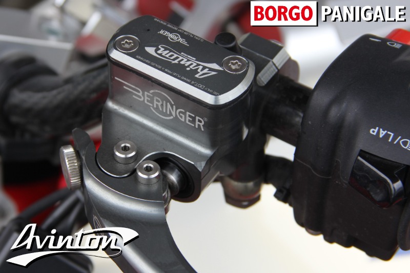 左右のスイッチBOXは至ってシンプルに。必要最小限の装備でまとまっており、中央のメーターパネルとのバランスも良い仕上がり。それでもメーター手前には、アルミ削り出しのバーハンドルポストがこだわりの美しさで主張しております。ブレーキマスター&クラッチマスターはベルリンガー製のAvinton専用、アルミ削り出しのマスター1体式のフルードリザーバータンクを装備。(画像ではブレンボRCSマスターが装着されておりますが、ご納車の際にはクラッチ側同様のマスターシリンダーにお戻ししてのお渡しになります)
