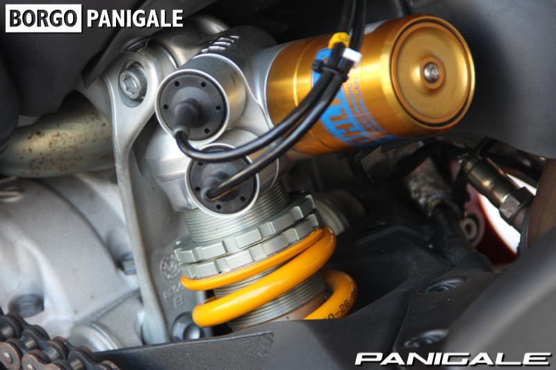 前後のサスペンションにオーリンズ製の電子制御セミアクティブサスを採用。路面の状況、加速、減速、バンク角などをセンシングして、ショックアブソーバのダンピング特性を自動的に最適化するシステムを搭載しています。さらにオーリンズ製の電子制御式ステアリングダンパーも装備。快適な走りから、ハードなセッティングまで、幅広く調整が可能です。