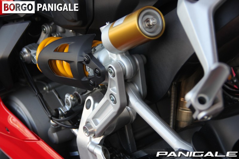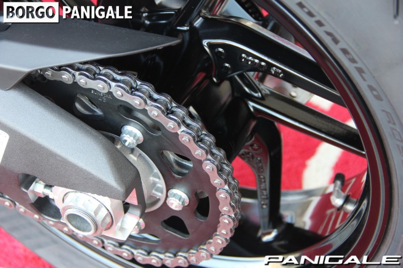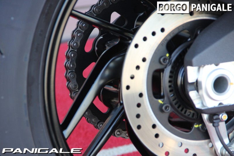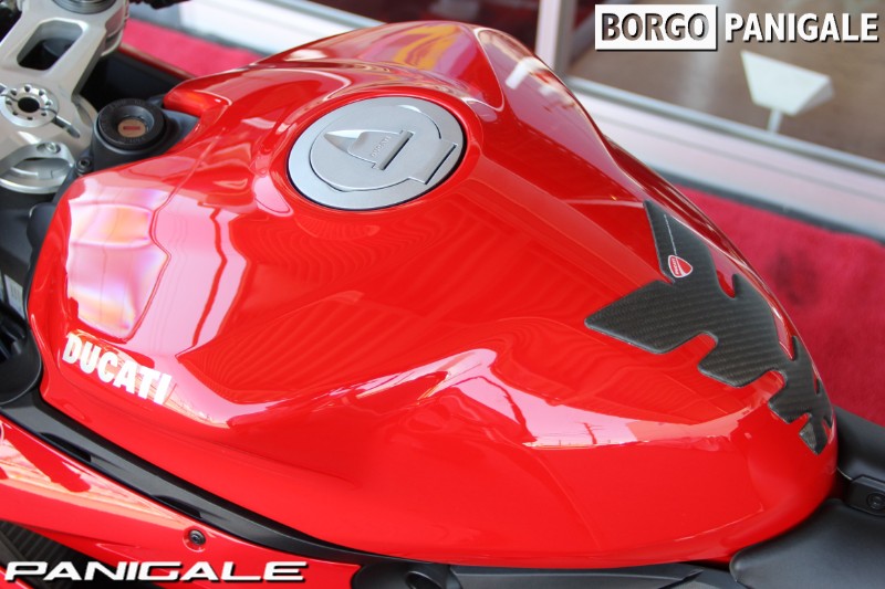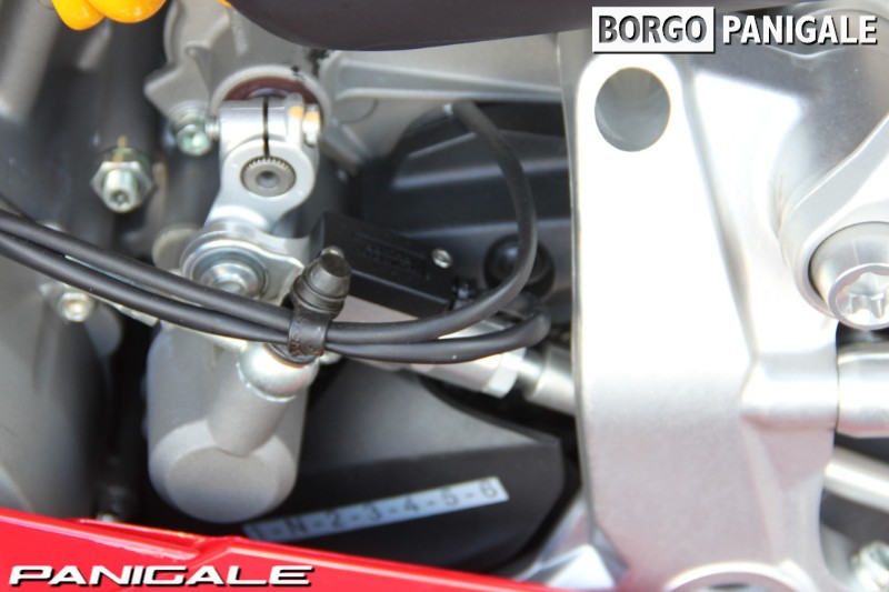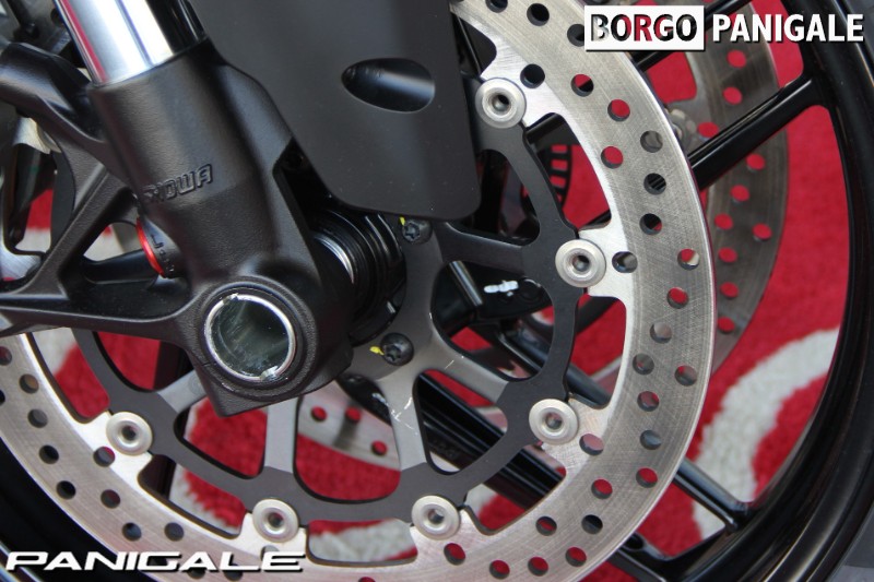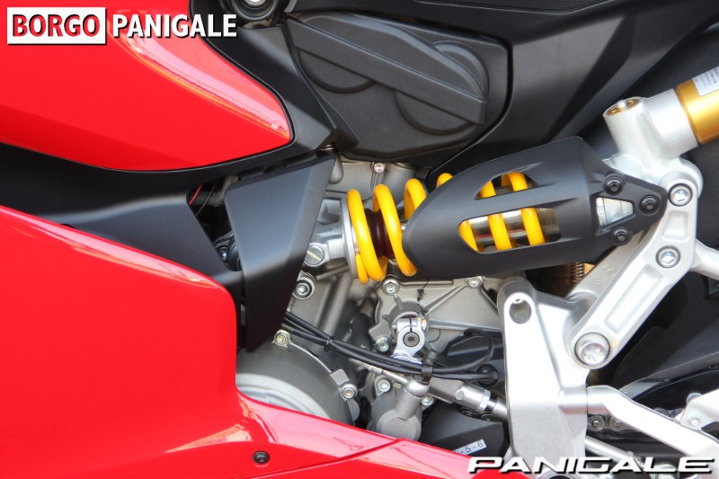 前モデルの899パニガーレからピストンボアは同じで、ストロークを3.6ミリ延長し、ややロングストロークにすることで得られた955ccの排気量を持つ。最高出力147PS・最大トルク10.4kgmを誇るドゥカティ伝統の水冷Ⅼ型ツイン、スーパークアドロエンジンを搭載。ハイエンドのスーパーバイクと違い、扱いやすいエンジンパワーは、ツーリングやワインディング、サーキット走行まで、幅広く遊べる楽しいキャラクターとなっております。