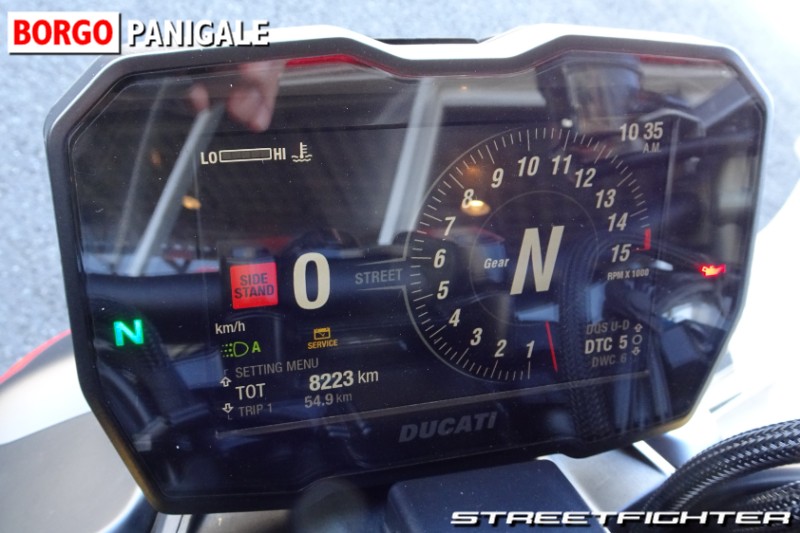 ストリートファイターV4SPは、ネイキッドモデルとしてはトップクラスの最高出力208hpを誇り、1,103ccデスモドロミックV4、デスモセディチ ストラダーレという、パニガーレV4とほぼ共通のエンジンを搭載して、ハイパワーの塊のような基本性能ですが、優秀な電子制御システムによりライディングモードを変化させることで、使用される舞台に合わせ、市街地からのツーリングや高速道をひた走るロングツーリング、峠道やワインディング。時にはサーキットでの走行など、幅広いセットアップが簡単にワンタッチで操作可能です。