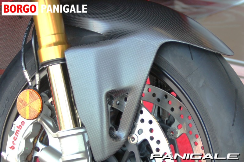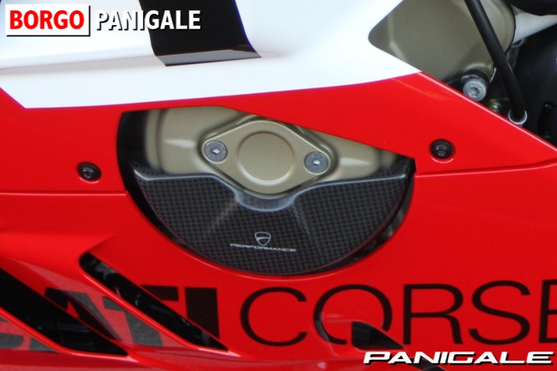 標準で装備されるドライカーボン製フロントフェンダーに加え、さらにオプションでリヤフェンダー、エキゾーストガードなどの各プラスチックパーツをカーボンパーツへ換装、さらにスイングアームカバー、フレームカバー、クラッチカバー、ジェネレーターカバーもドライカーボン製にして、質感・軽量性ともにワンランク上の仕上がりとなっております。
