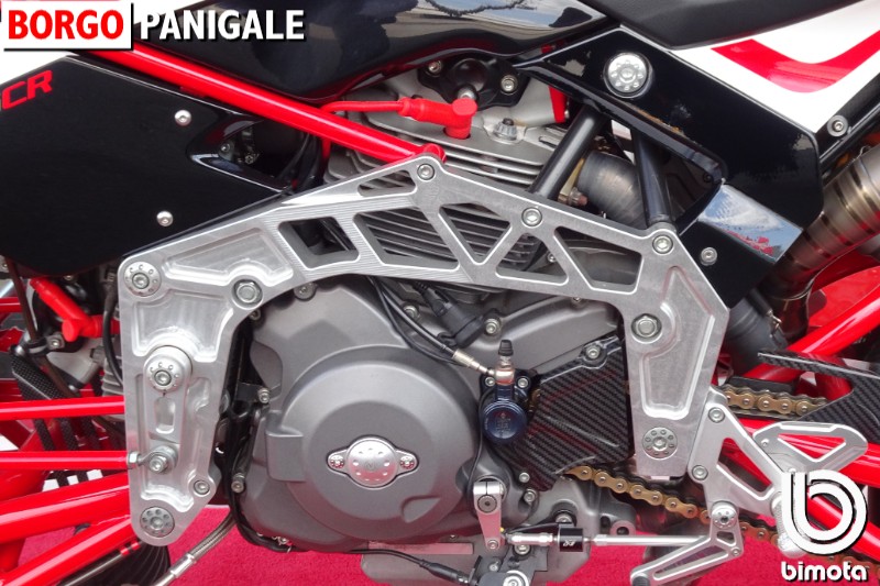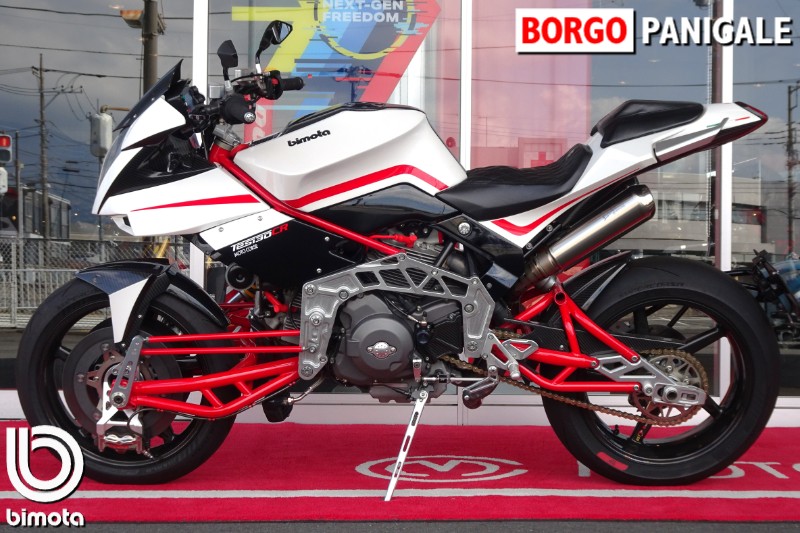 必要なもの以外すべてを脱ぎ捨て、フレームらしいフレームさえも持たない他に類を見ない孤高のバイク Tesi-3D。モトコルセがイタリア bimota社に6台のみオーダしたTesi-3DCをベースにさらにカスタマイズを施したスペシャルマシン。ドライカーボン製のボディワークやホイール、高性能なブレーキやサスペンションを装備しエンジンを挟むアルミ削り出しのオメガプレートはアルマイト、前後スイングアームは粉体塗装で仕上げられています。バイクの乗り味を決定づけるシャシー。Tesi 3DCRはシャシーやサスペンションの常識を覆しその特殊な機構のセンターハブステアリングは所有感を満たすと同時に上質な乗り味を約束してくれます。エンジンはDUCATI 空冷1100ccのLツインを採用。クラッチはSTM製 スリッパークラッチで乾式化しDUCATI 空冷エンジンのパフォーマンスと気持ちよさを最大限に引き出しています。