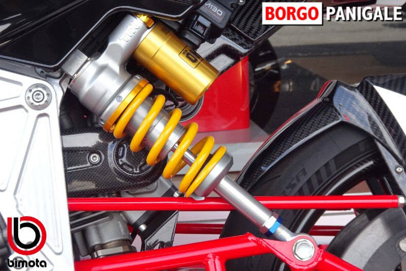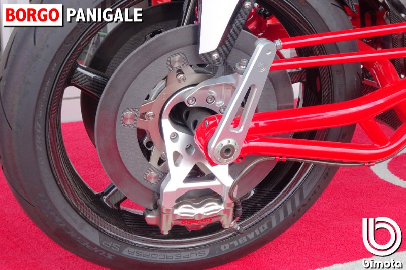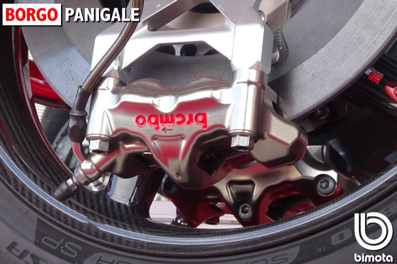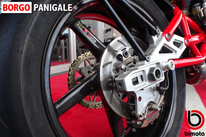 フロントのディスクキャリパーは、ブレンボ GP4 RX CNCクロームに換装、ディスクローターはSICOMのセラミックローター、リヤはブレンボ 2ピストン34レーシングニッケルキャリパーへ換装し、Althのベンチレーテッドローターと組合わせており、抜群のブレーキ性能を誇ります。