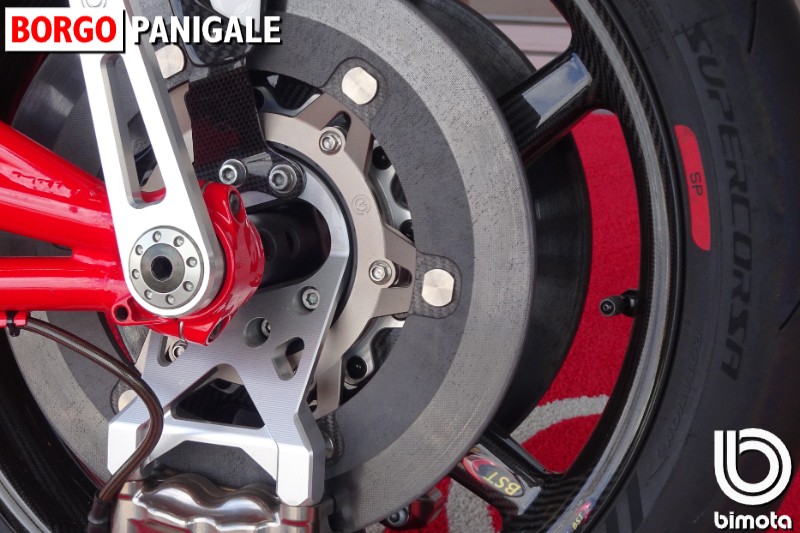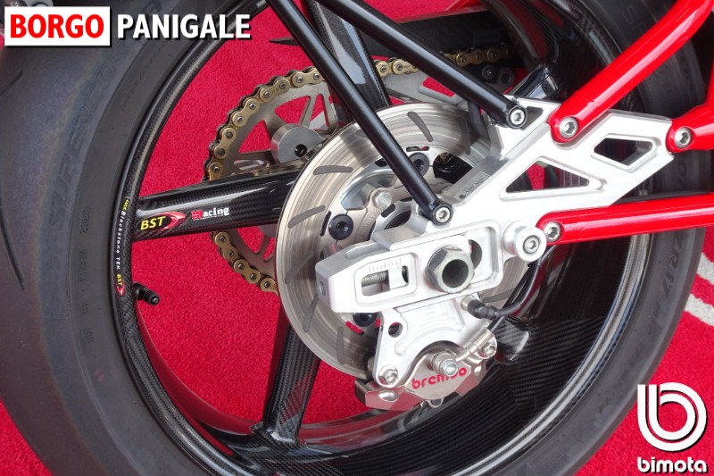 前後のホイールは、OZ製の鍛造アルミホイールから、BSTカーボンホイールに換装。軽さも然ることながら、円方向への慣性モーメントが少なくなることでブレーキの効きが良く成り、コントロール性も向上。ハンドリングだけではない効果抜群のカスタマイズで、グレードアップされております。