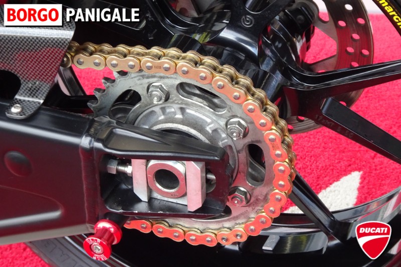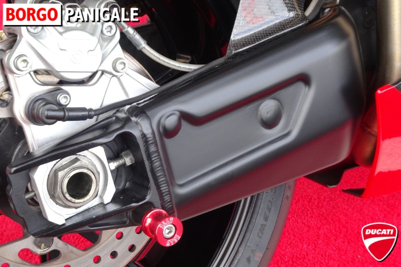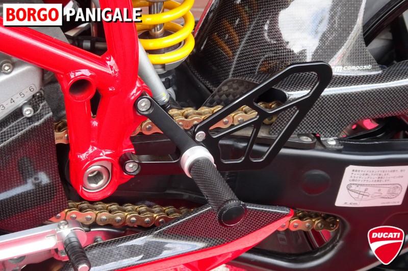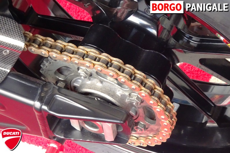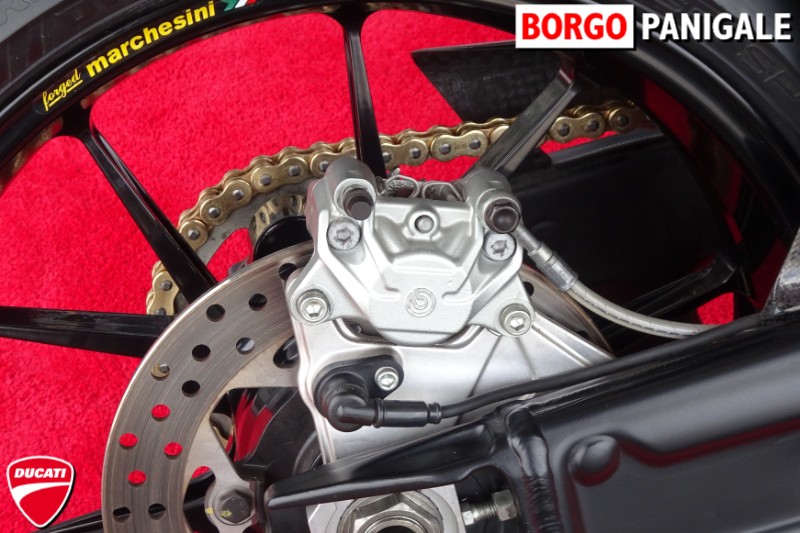 現行パニガーレV4と同様に、従来の片持ちスイングアームから両持ちスイングアームへと大きく舵を切ったモデルでもあります。