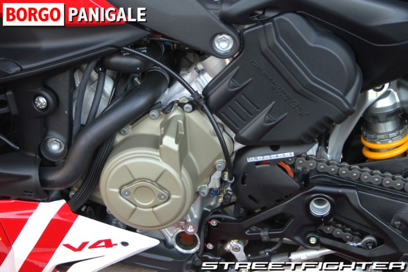 「ストリートファイター」という名を耳にすると、非常に過激なバイクを想像されがちですが、ストリートファイターV4Sは、もともとスーパーバイクであるパニガーレV4をベースに、カウルを取り去りバーハンドルを装着したモデルが基本設計となっています。