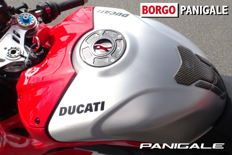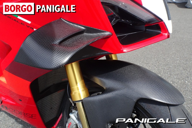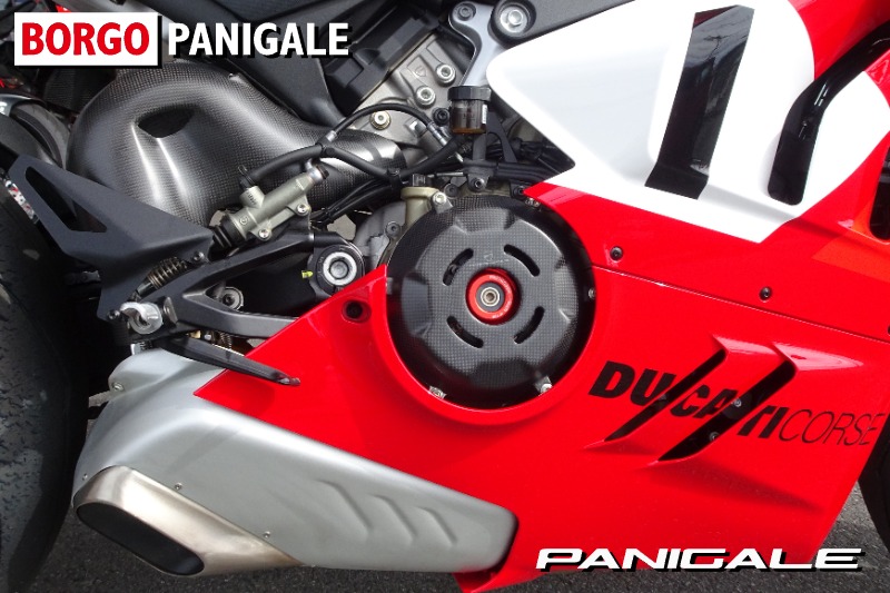 デスモセディチストラダーレユニットはユーロ5に対応、フライバイワイヤスロットルもリニアなコントロール特性にモデファイされ、スムーズで扱いやすく非常に評判の良い仕上がりに。STM製のV4R専用のドライクラッチシステムを搭載し、クラッチカバーはドラカーボン製のオプション品に変更。フロントフェンダーやウイングにドライカーボン製パーツを採用、エキゾーストガード他カーボン製のオプション品も合わせて多数装備しております。