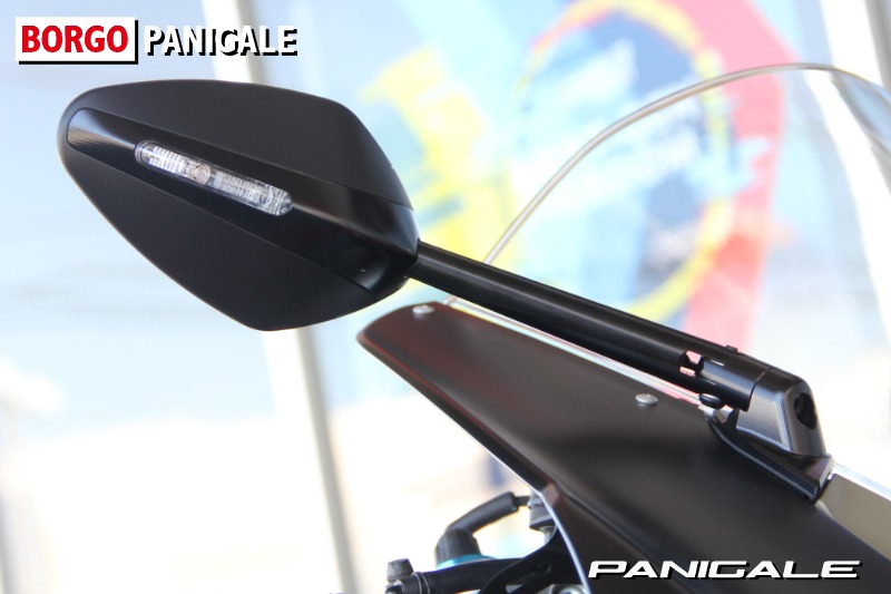 ドゥカティパフォーマンス・Rizoma製のアルミ削り出しのステップキットは、ステップ位置をお好みで調整できる、アジャスタブルステップ。アッパーフェアリングからは、Rizoma製のアルミ削り出しのウインカー内臓、ビレットミラーが伸びており、オプション装備しております。