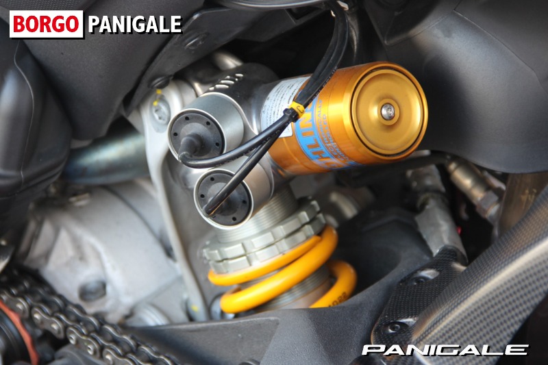 足回りにはオーリンズ製のNPX25/30倒立フロントフォークと、オーリンズTTX36リアショックアブソーバーを採用、Smart EC 2.0システムによって電子制御された秀逸なサスペンションシステムを装備。