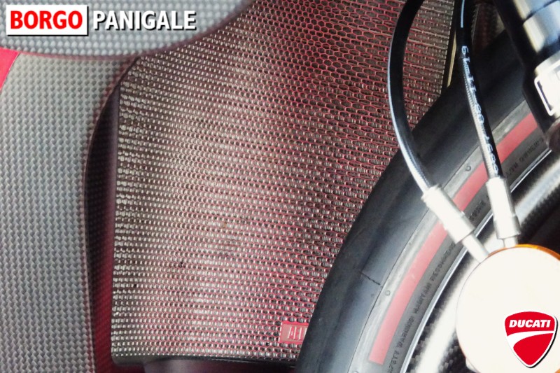 全てのフェアリングはもとより、メインフレームやスイングアーム、バイプレイウイング、ホイールに至るまでカーボンで仕上られた、究極のドゥカティ・スーパーバイクです。